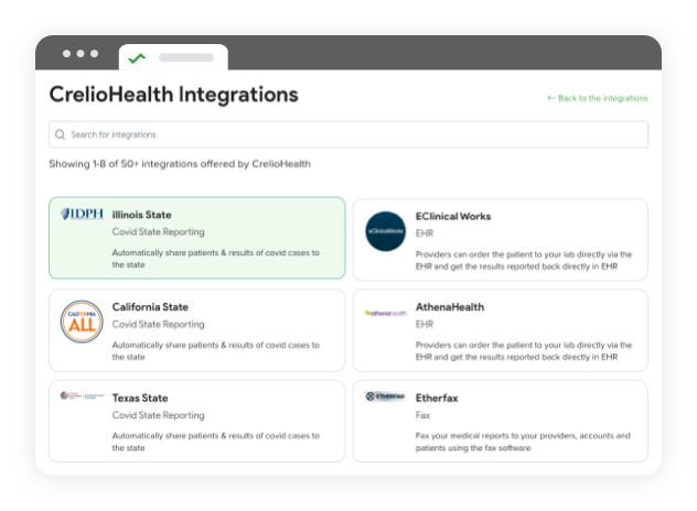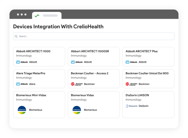Explore Software IntegrationsAs a LIMS Integration Specialist, CrelioHealth offers a wide range of supported APIs, lab integrations, and interfaces that enable seamless connections to crucial third-party systems and applications necessary for your laboratory. Our robust LIMS API Integration ensures data transfer, streamlines workflows, and guarantees compatibility across multiple platforms.